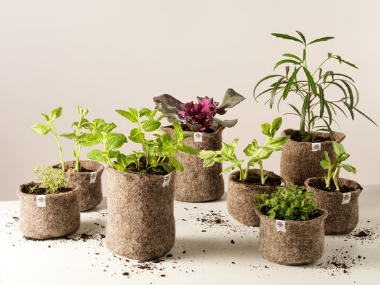 The Wool Pot is ideal for vegetables, herbs, and flower seedlings. The small size suits plants like basil, lettuce, or pansies, while the medium size works well for tomatoes, beans, or sunflowers. The Wool Pot can be also used for native tree seeds!